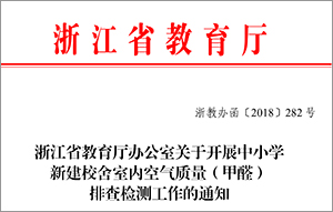 浙江省教育厅办公室关于开展中小学新建校舍室内空气质量(甲醛)排查检测工作的通知【通知函】【通知全文】各市、县(市、区)教育局:现将国务院教育督导委员会办公室…